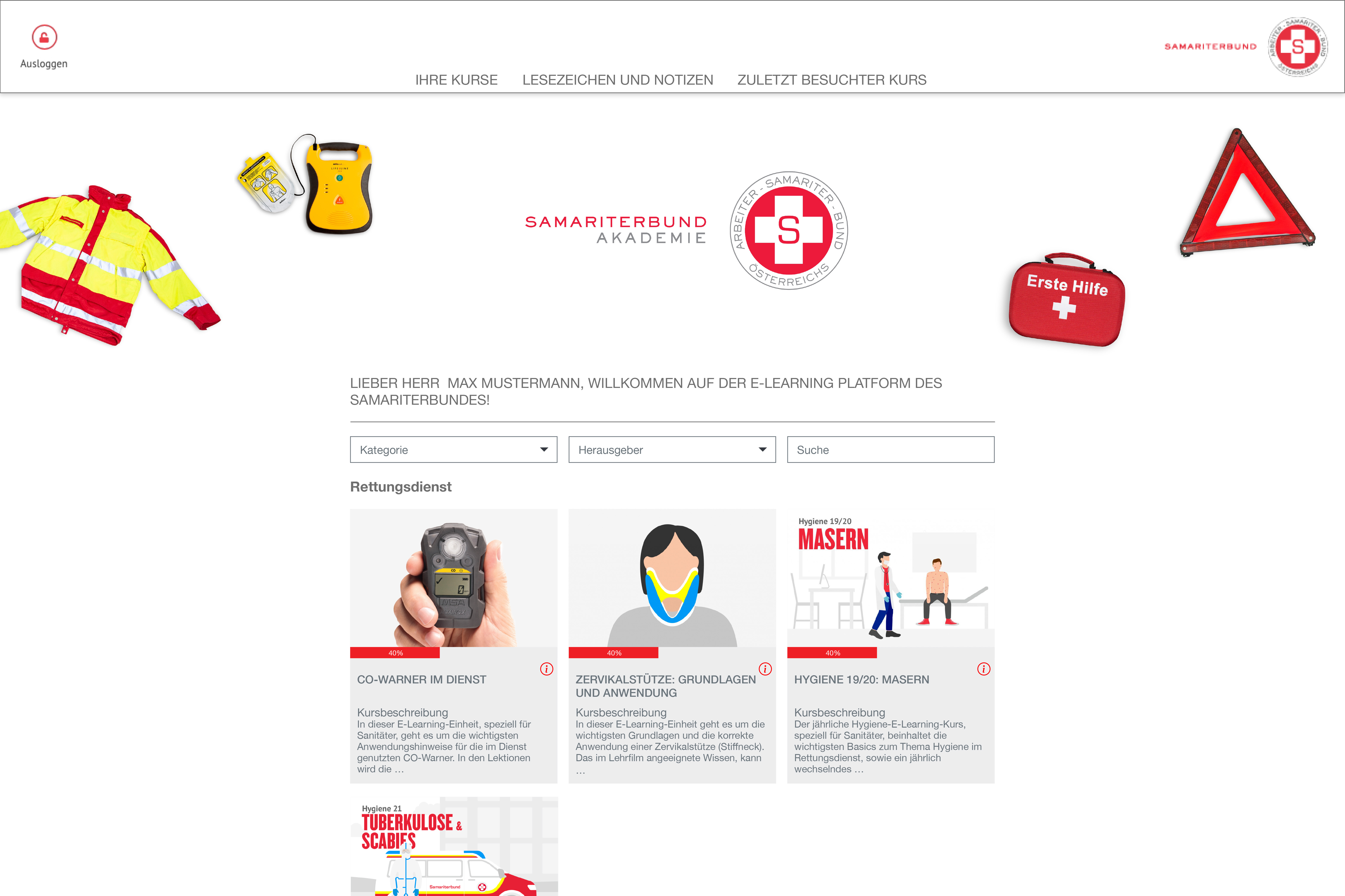 Für die neue Lernplatform vom Samariterbund habe ich ein Mockup gestaltet und Kurse in das LMS eingepflegt.