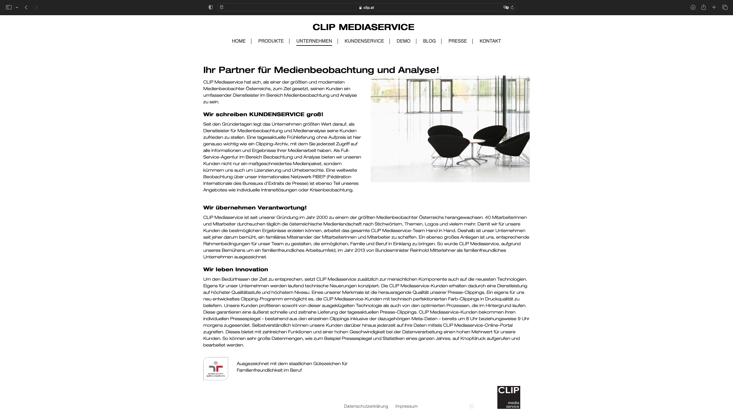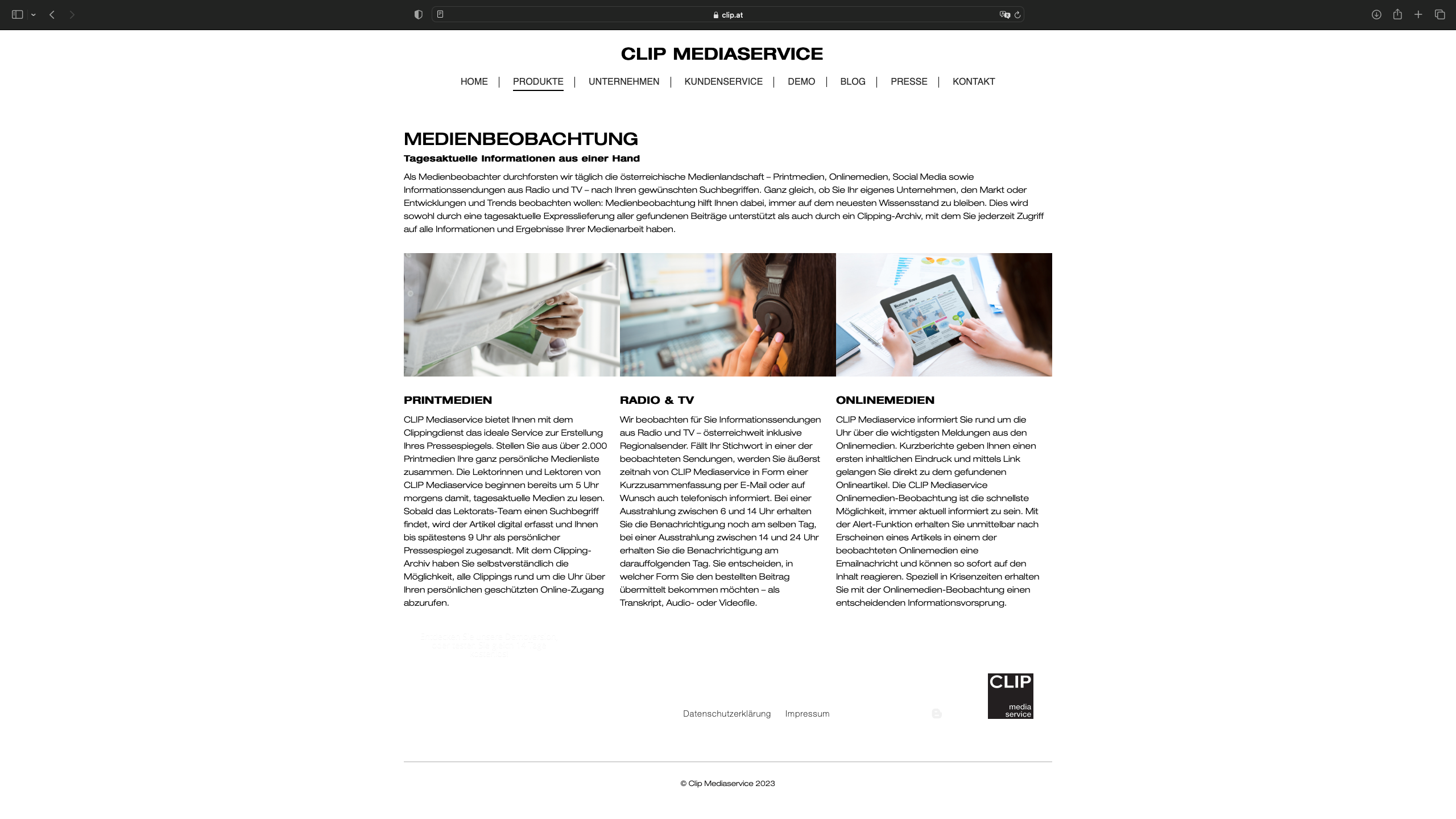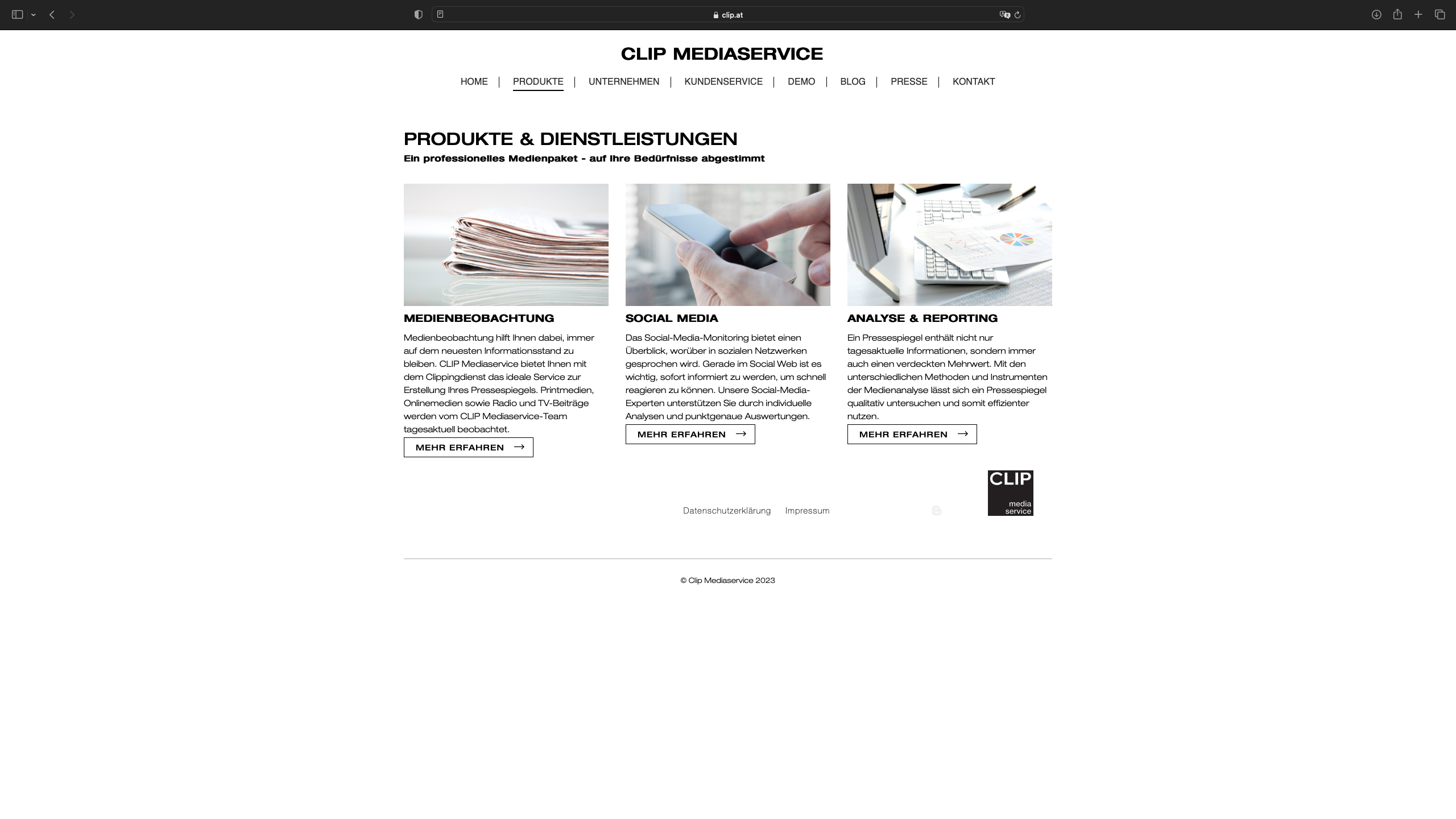 In meinem Praktikum bei Clip Mediaservice habe ich mich mit der Neugestalltung der Website befasst. Mit dem Programm Adobe XD habe ich die Website responsive gestalltet um den Programmierern eine Visuelle Vorlage geben zu können.